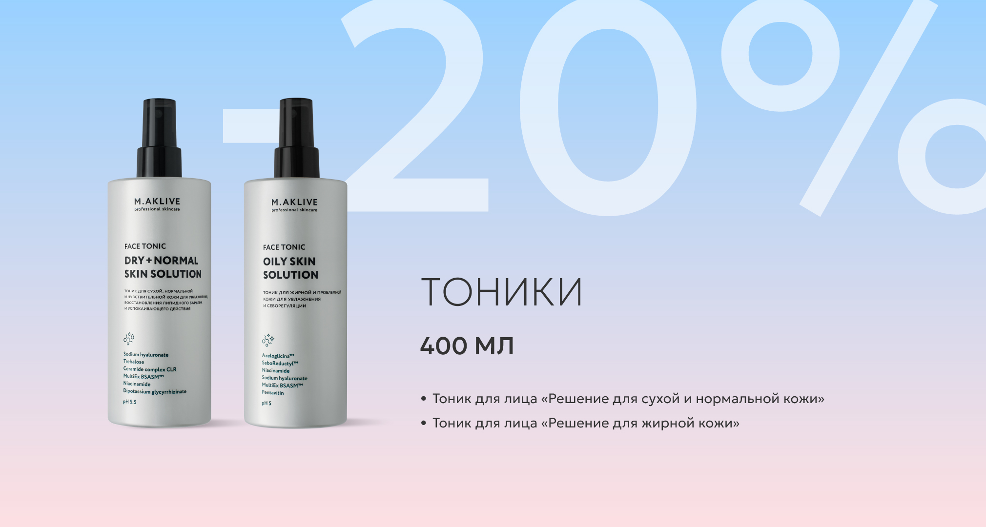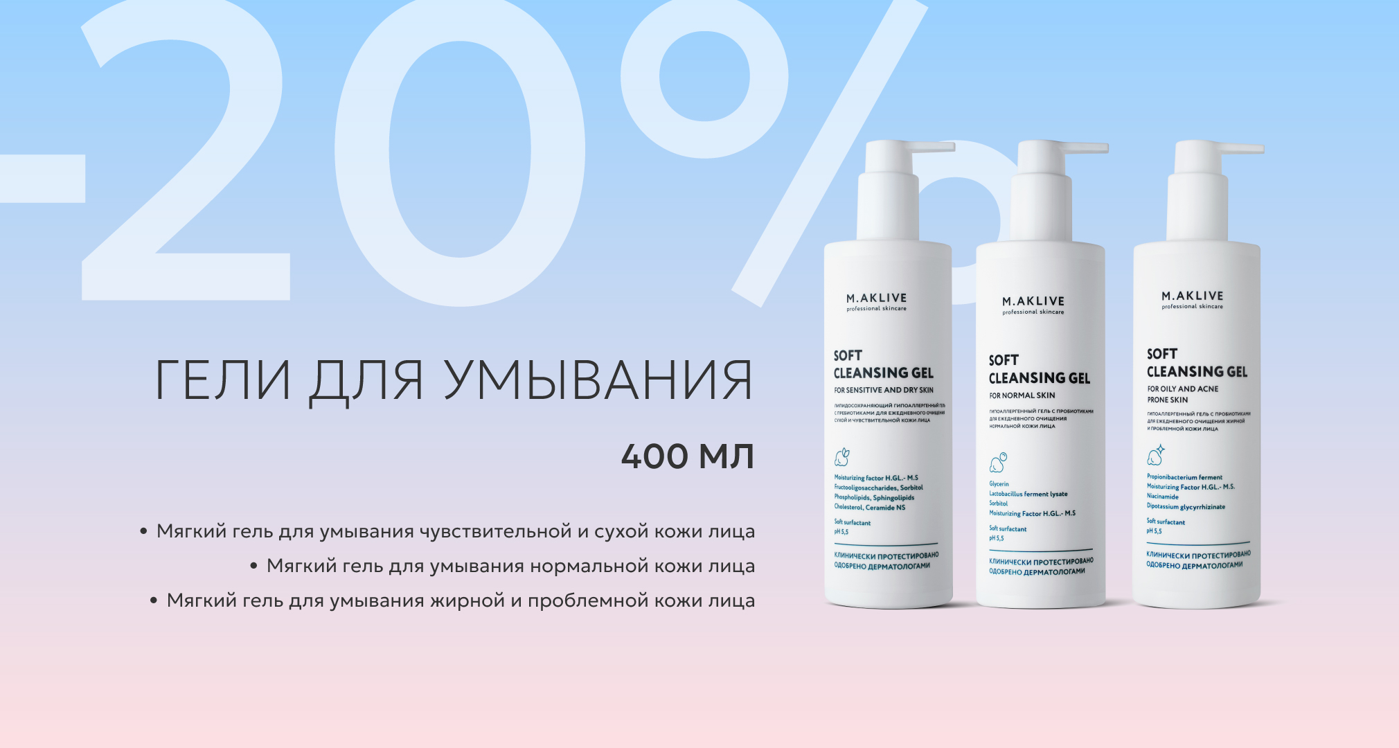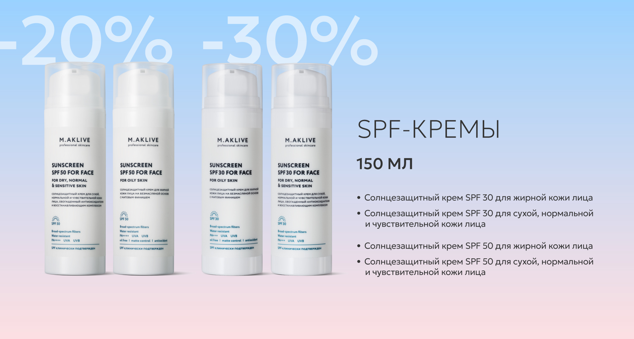 В акцию включены самые востребованные продукты: гели для умывания, тоники, кремы для базового ухода, SPF-кремы по типу кожи, крем-регенерат.